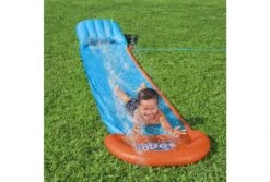 De Bestway H2OGO! Tsunami buikschuifbaan is 4,72 meter lang en 84 cm breed. Gebruik de blauwe buikschuifbaan op een zachte ondergrond of plaats rubber tegels om een vervelende landing te voorkomen.