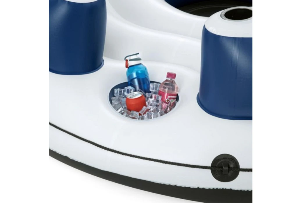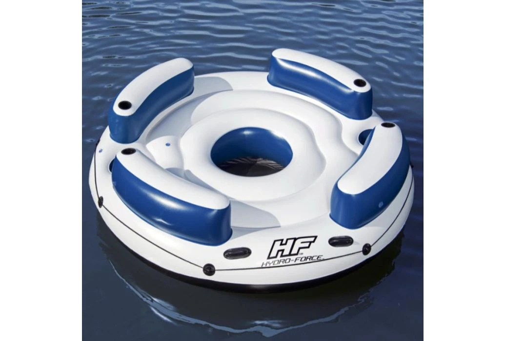De Bestway Hydro Force Lazy Dayz is een drijvend eiland welke geschikt is voor 4 personen. De loungeband is uitgerust met 4 rugleuningen met daarin ingebouwde bekerhouders, 2 handvaten, 2 bewaarvakken en een grijpkoord rondom de band.Â