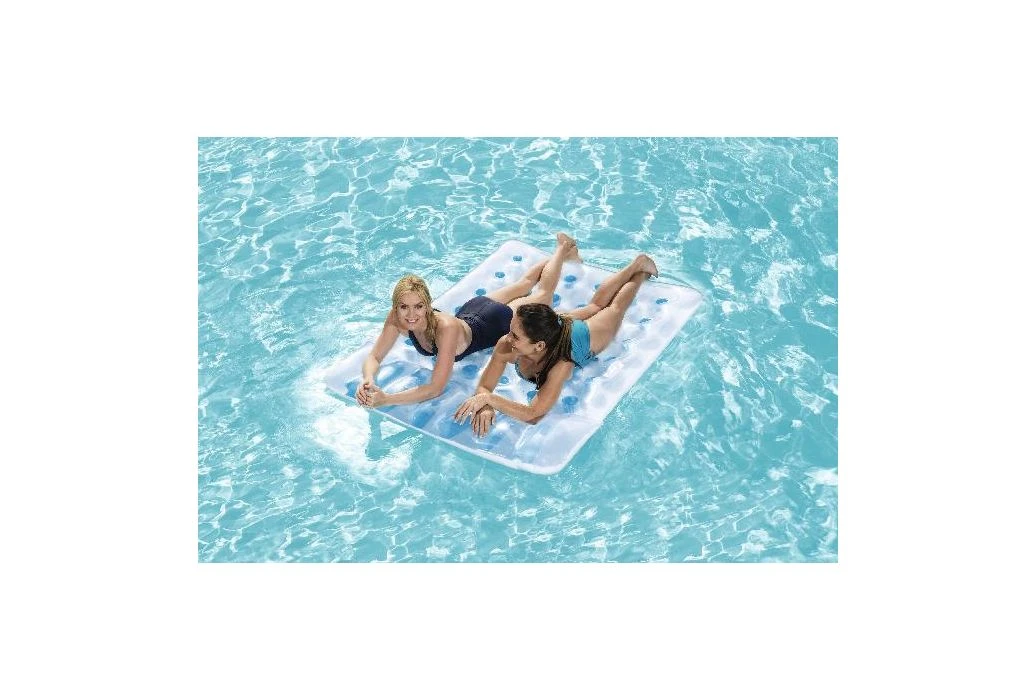 Samen genieten op het water zonder van elkaar weg te drijven. Met dit 2 persoonsluchtbed kun je heerlijk dobberen op de zee of in je eigenzwembad.