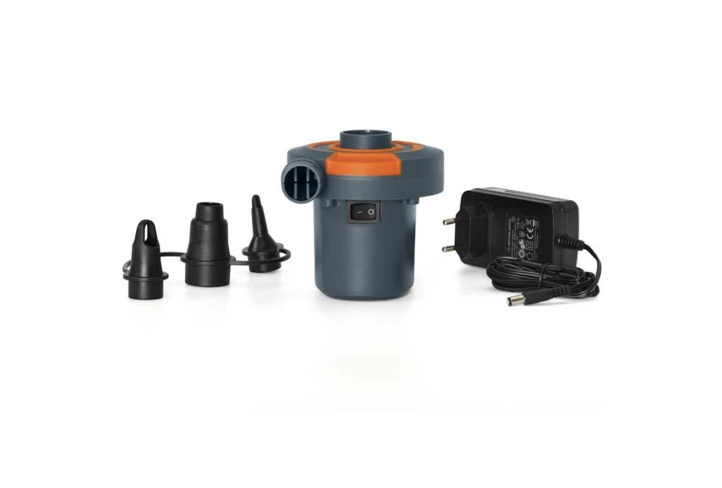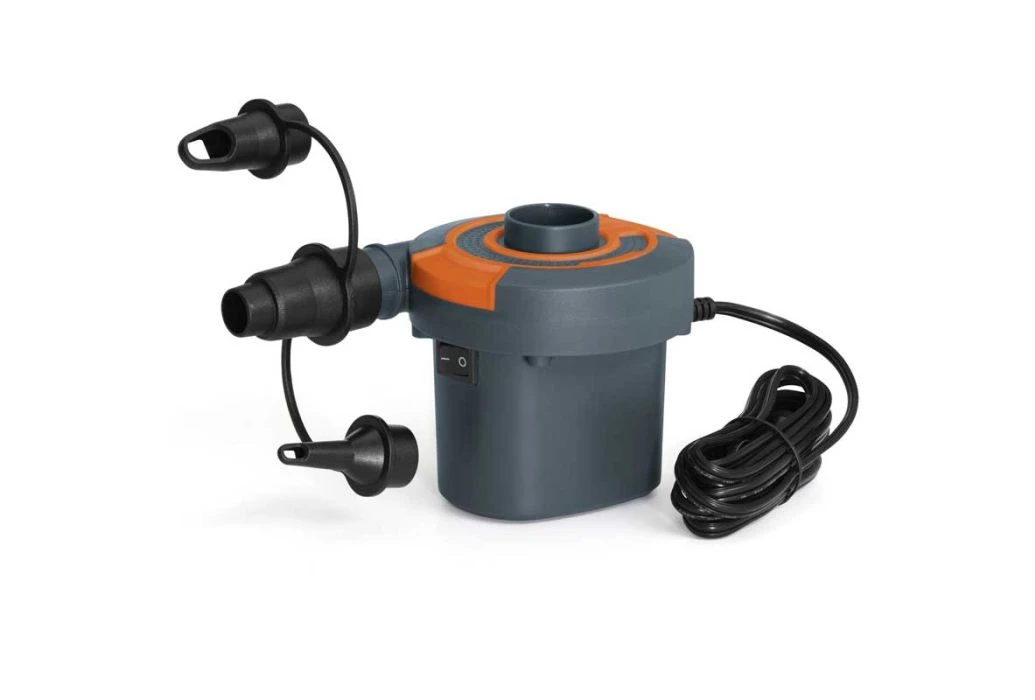 Deze krachtige opblaaspomp van Bestway blaast snel je zwembad, luchtbed of ander opblaasbaar product op. Deze pomp werkt met behulp van zowel een standaard stekker als een 12V plug. Met een airflow van 11 liter per minuut blaast deze gemakkelijk jouw luchtbed op of haalt deze net zo snel weer leeg. Deze luchtpomp is namelijk uitgerust met een 2 weg ventiel. De drie aansluitstukken zijn geschikt voor ieder stuk opblaasbaar speelgoed.