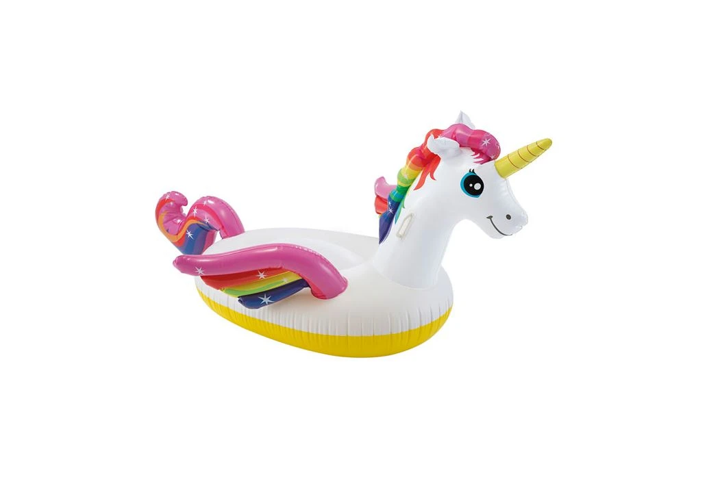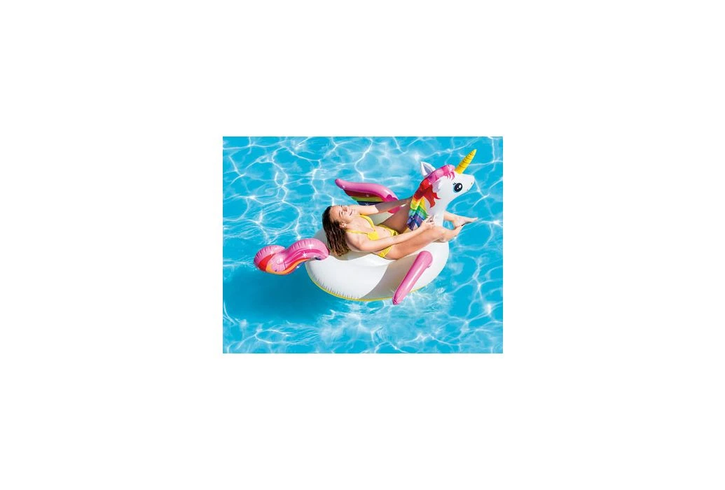 Drijf mee op de rug van deze grote eenhoorn en geniet van het samen spelen in het zwembad.