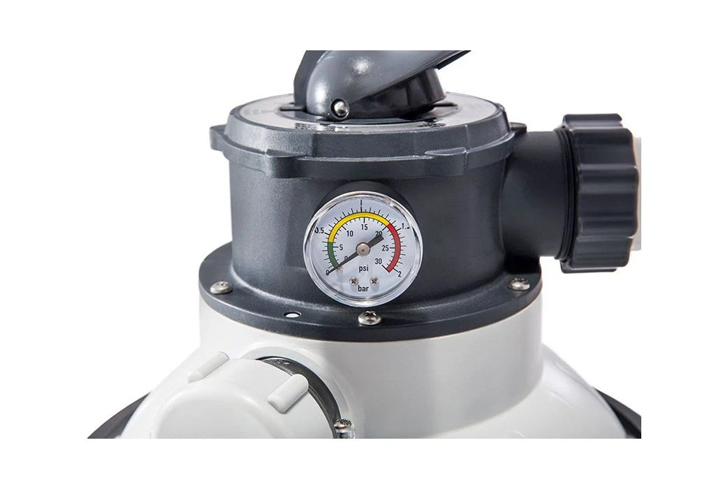 Deze zandfilterpomp uit de Krystal Clear serie wordt geleverd met een omvormer naar 12 Volt voor de veiligheid; de standaard RCD veiligheidsstekker slaat automatisch af bij te hoge spanning dus samen is dat een dubbele veiligheid.