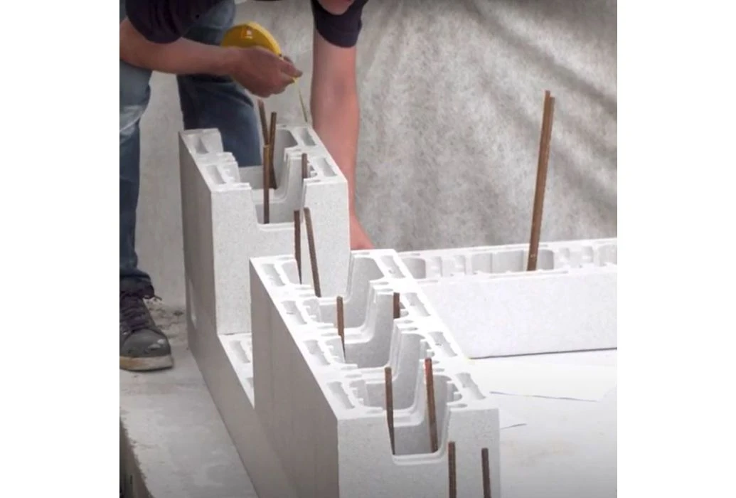 Om de blokken aan elkaar en in de betonvloer te monteren heb je draadijzers nodig. Wij adviseren draadijzers van 157 cm lang en met een diameter van 10 mm te gebruiken om de blokken verticaal te monteren. Je monteert deze “staanders” om de 25 cm. Verder heb je 6 mm betonijzer nodig, om de staanders met staaldraad ook horizontaal aan elkaar te bevestigen. Dit monteer je per laag.